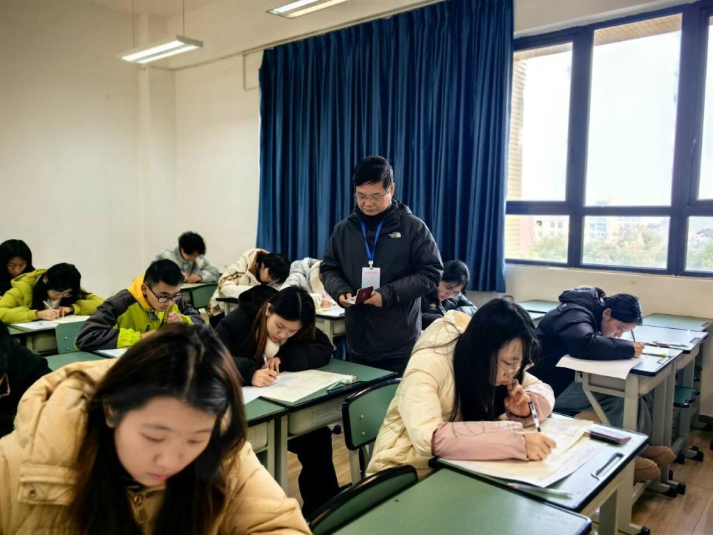 为全面保障期末考试工作规范、有序进行,学院于1月13日、14日分别组织了两校区期末集中考试巡考检查。学院院长姚永萍、副院长陈劲松和梁小利带队,教务处等相关职能部门及各二级学院负责人共同参与,深入考试现场,对考场秩序、监考教师履职情况及学生考风考纪等进行了全面、细致的巡查。