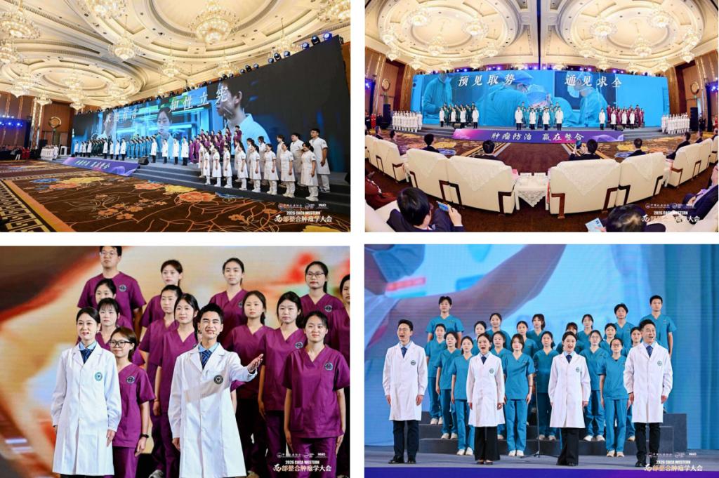 受大会邀请,我校工会与四川省肿瘤医院工会联合承办开幕式医学人文诗作朗诵节目。100名川护学子与省肿瘤医院10名职工携手登台,深情演绎由樊代明院士领衔创作、以整合医学理念为内核的诗作《合之术(1)》。川护学子以饱满精神与真挚情感将医学温度与人文情怀完美交融,充分展现了新时代医学生的专业素养与青春风貌,演出获得与会领导、专家及嘉宾的高度赞誉。