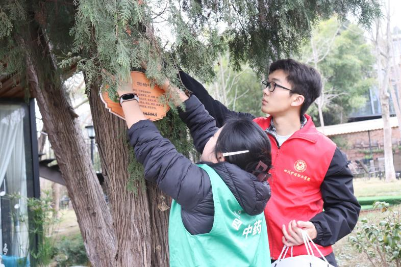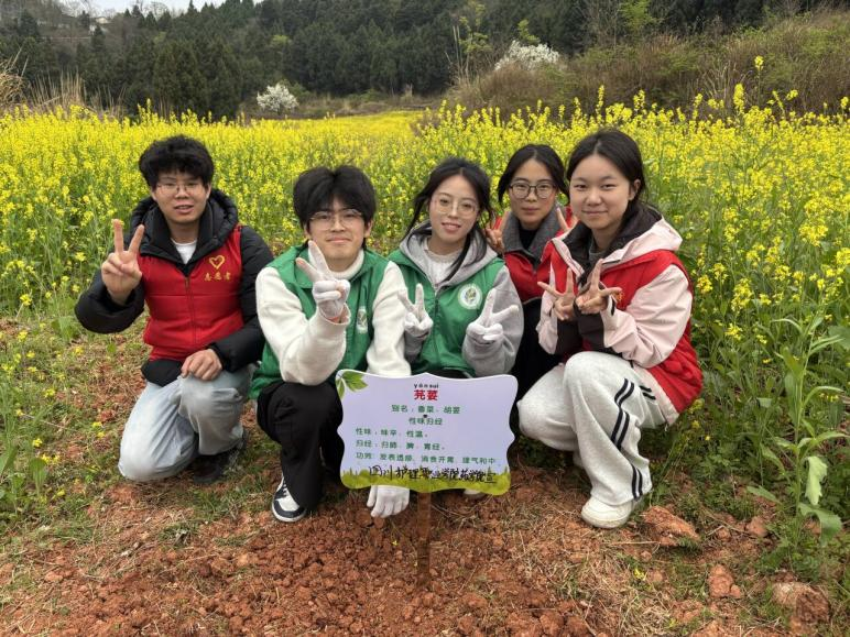随后,师生们共同为药用植物悬挂标识牌,标注植物学名、特性及文化科普知识,并栽种药食同源植物芫荽,为乡村生态增添中医药文化底色。活动中,大家还主动清理周边环境垃圾,以实际行动守护生态、传递雷锋精神。