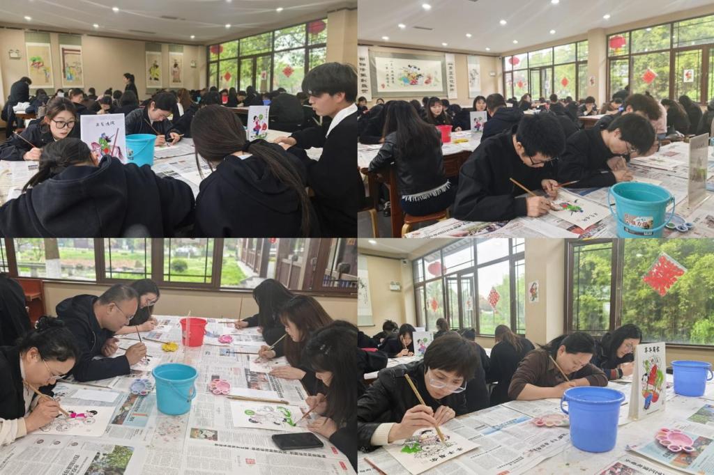 在非遗手工彩绘体验环节,师生们在非遗传承人的现场指导下,认真学习色彩调配、线条勾勒等技巧,全神贯注投入创作,亲手完成兼具传统韵味与个人特色的年画作品,沉浸式感受传统工艺的匠心与温度。