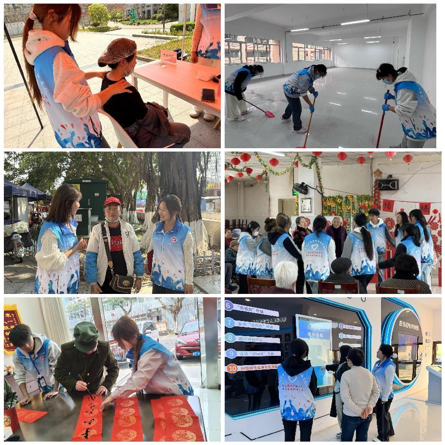 智慧护理学院组织志愿者走出校门深入社区,联合德阳市团委、旌阳区团委、德阳市第七人民医院、德阳市米市坝社区、德阳市福馨养老院、旌阳区反诈科普体验馆等,开展雷锋月系列志愿服务活动。本月共开展志愿活动20余场,800余名志愿者参与,累计服务群众10000余人次,涵盖关爱老人、反诈宣传、健康宣教、文明创建等活动。同时聚焦校园后勤一线,开展“智护驿站”特色服务与新实训大楼焕新行动,以专业技能服务教职工,美化实训环境。学生在实践中领悟雷锋精神,提升社会责任感与奉献意识。