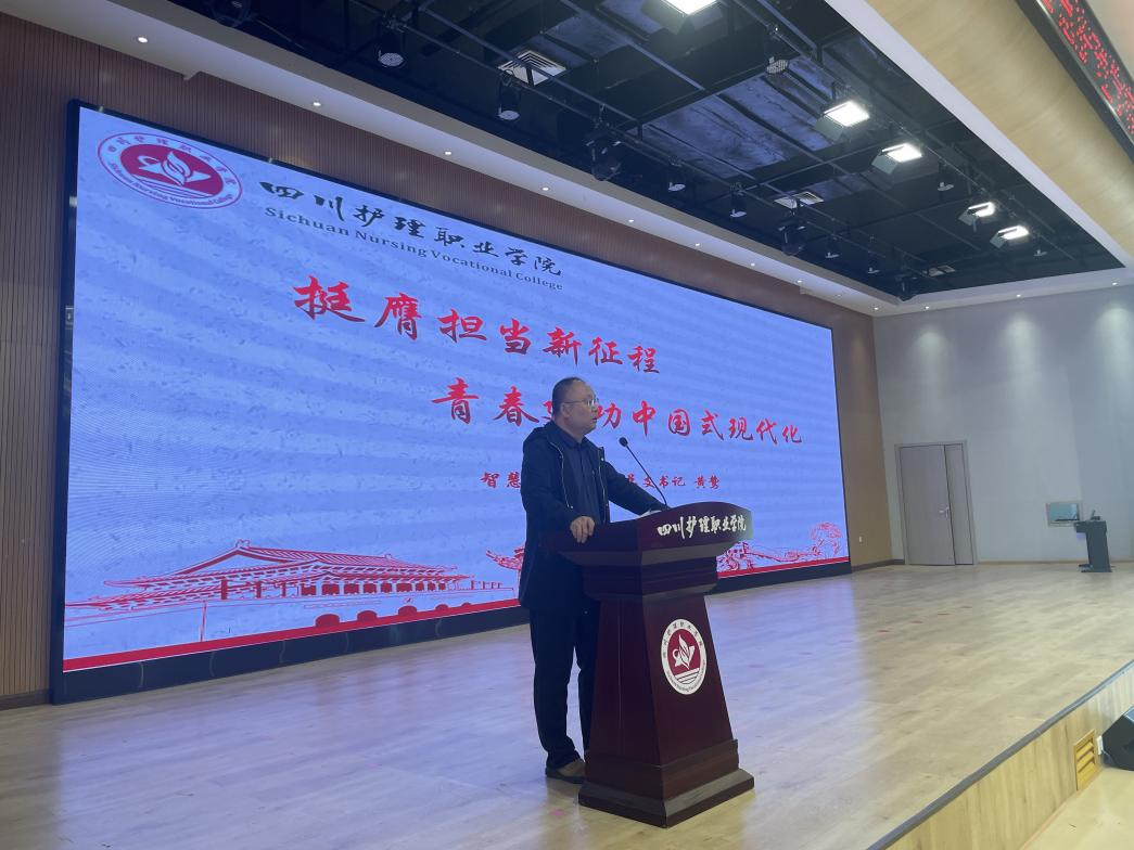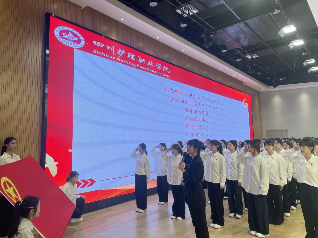 为加强共青团组织建设,增强团员青年的先进性、光荣感与使命感,引导青年学子在南丁格尔精神的感召下奋发有为。4月23日,智慧护理学院在德阳校区举行了“青春心向党 智绘新篇章”2026年新发展团员入团仪式。党总支书记黄鸷、副书记田炼出席仪式。